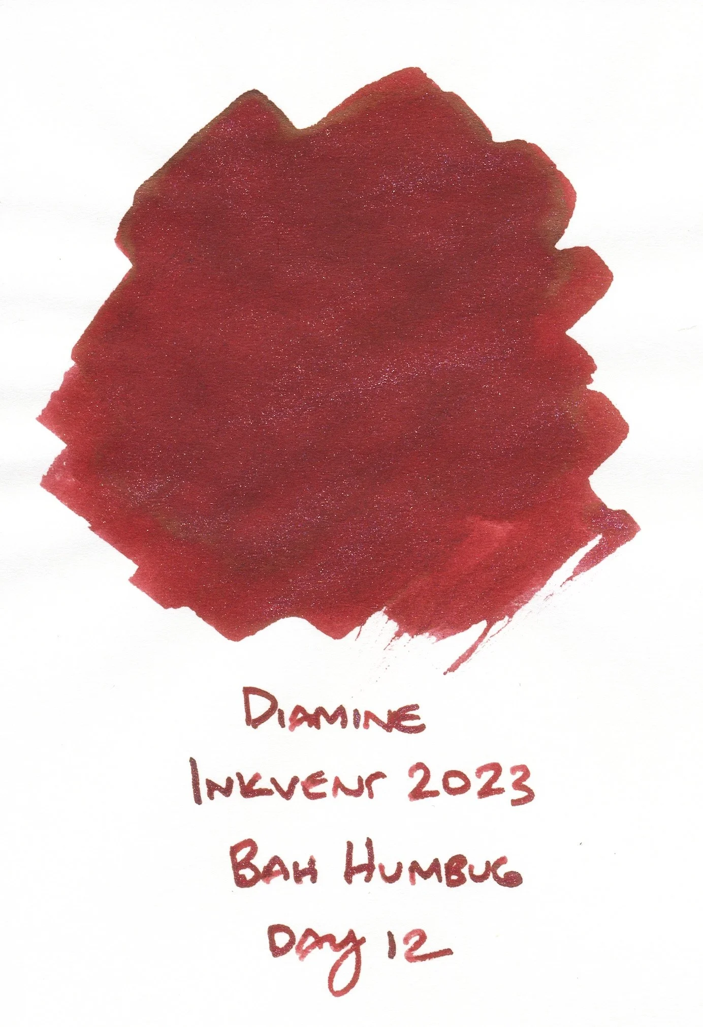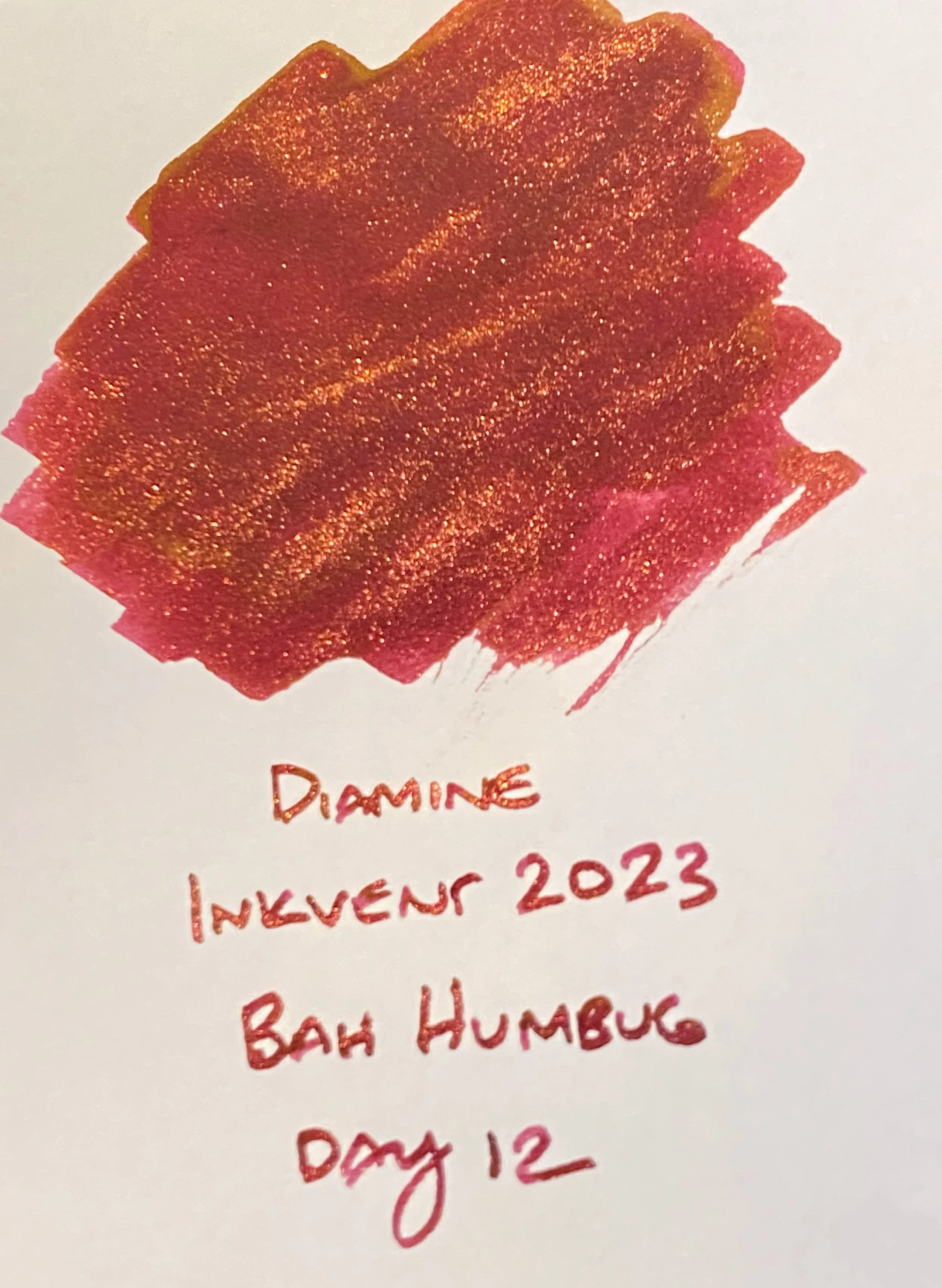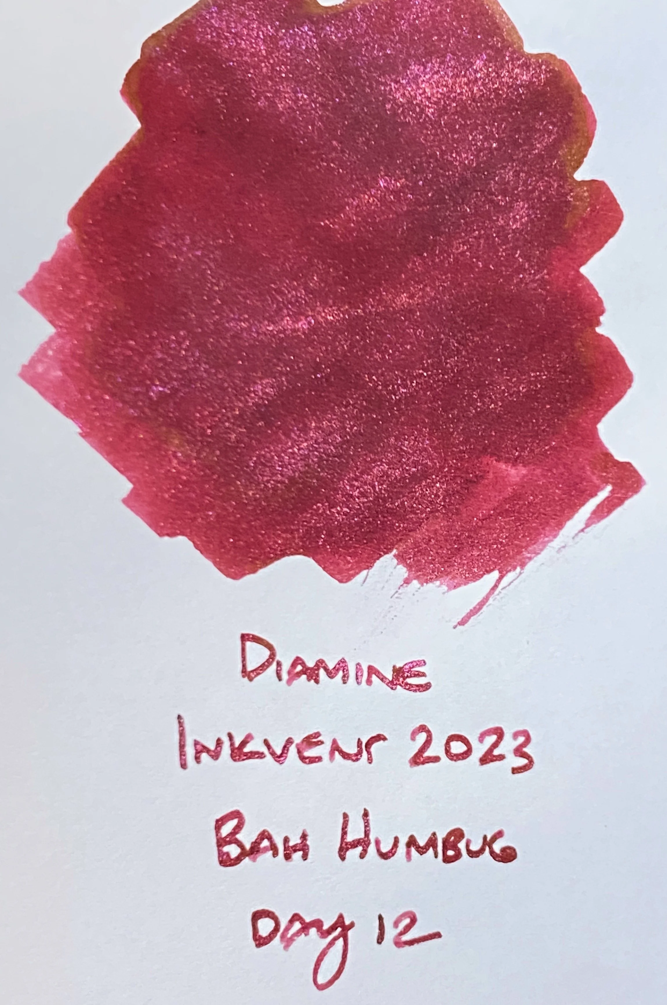 And while Diamine Deck the Halls from last year’s Inkvent has a dark purple base color, its dark magenta shimmer strongly reminded me of Bah Humbug’s shimmer.