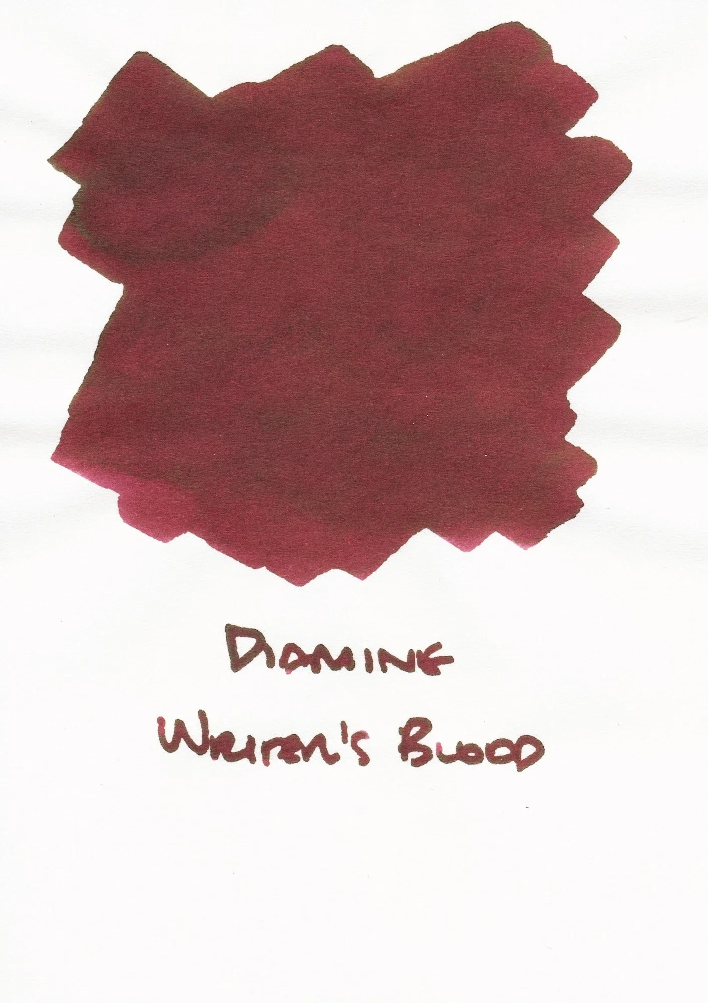 Of course, Diamine Writer’s Blood came to mind when I thought about comparisons. It looks a lot like the ink when swatched without shimmer. I have tried to like Writer’s Blood, but for some reason it doesn’t mesh with my preferences. It looks too much like dark, sticky blood, and it flows very wet. But I’ll look at it again in very dry nibs and under artificial lighting to see if that changes my outlook on it.